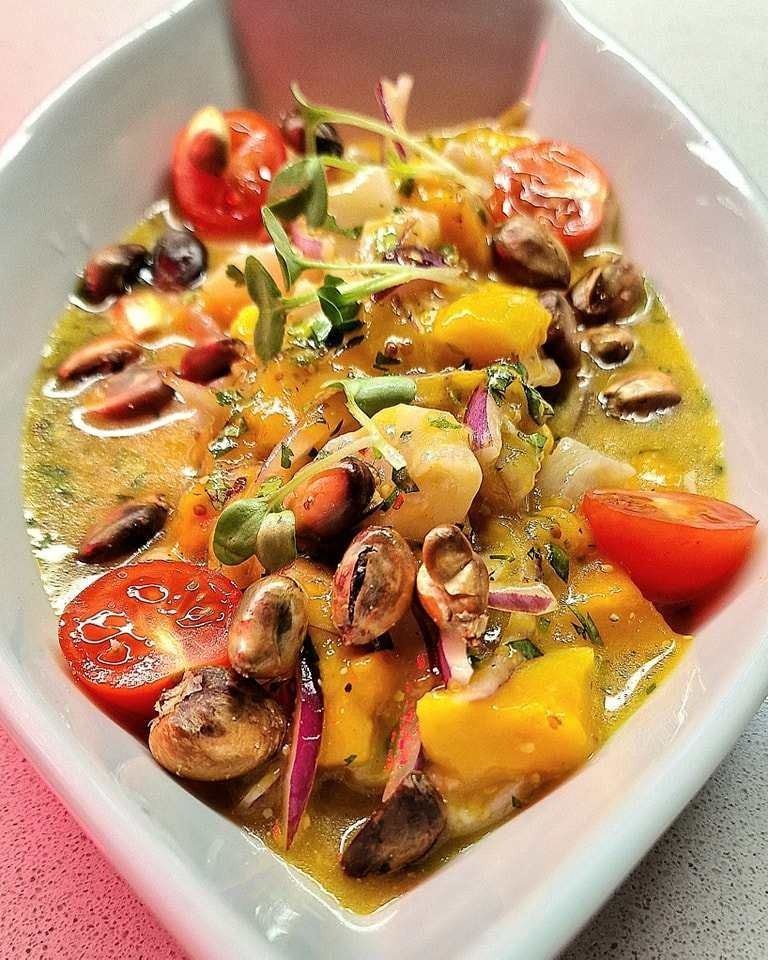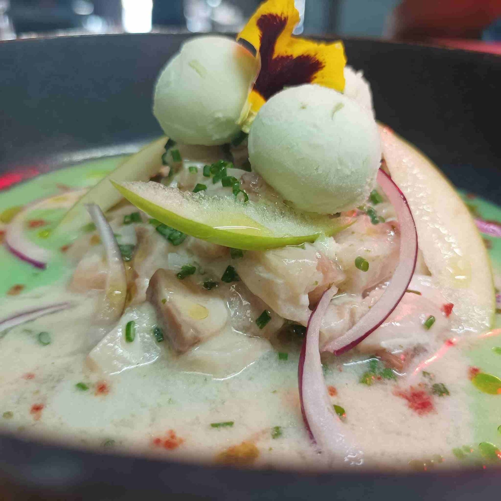 Aceite de oliva virgen zumo de naranja natural, salsa teriyaki, soja fermentada, lima y jenjibre